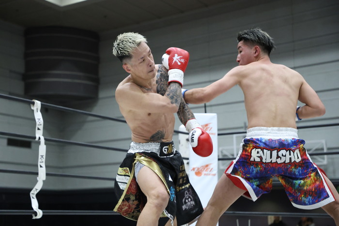 2Rも思い切り右ストレートを打つ佑典。優翔が距離を詰めてのボディ攻撃で佑典の身体が丸まり、優翔は左ボディ、右ヒザ、最後は右ストレートで佑典をKOした。