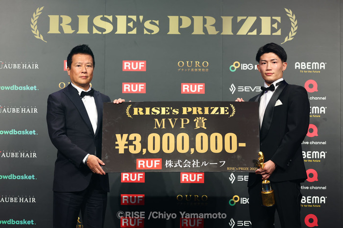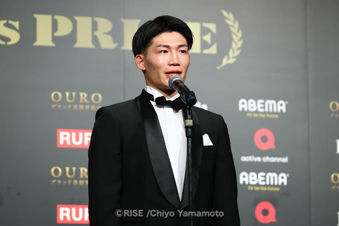 安本は「素晴らしい賞をありがとうございます。今年振り返って、2025年初RISEのメインをやらせてもらったり、防衛戦をやらせてもらったんですけれど、その後シュートボクシングのトーナメントに出ることになってRISE代表としてしっかりSBの選手を倒して、RISEの強さを証明できたと思います。来年は2025年のMVPとして2026年もMVPを獲れるようないい試合をするので、今後の安本晴翔に期待してください。押忍」と語った。