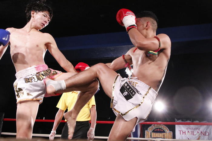 プレリムの第1試合で秋田巴琉(キングムエ)が、エリアス・ガザリ(マレーシア)と136ポンド(61.68kg)契約3分3Rで対戦。