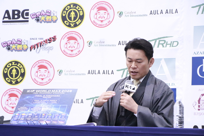2026年はさらに過酷で規模が大きくなったMAX世界トーナメントとして、「今年のWORLD MAXは『世界が主役のトーナメント』。世界と一緒に作るK-1へ。これが、K-1 WORLD MAX 2026のかたちです」と須藤Pは語った。