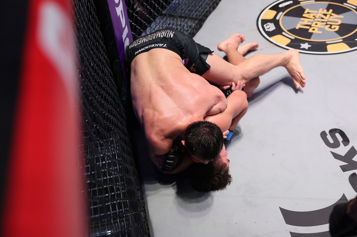 またRIZIN王者のラジャブアリ・シェイドゥラエフ(キルギス)と、PFL2024年王者ティムール・ヒズリエフ(18戦無敗)との対決の可能性を榊原CEOが示唆しているフェザー級では、3位のヘスス・ピネドを1R TKOに下したサラマット・イスブラエフ(カザフスタン)が10戦無敗とし、存在感を示した。