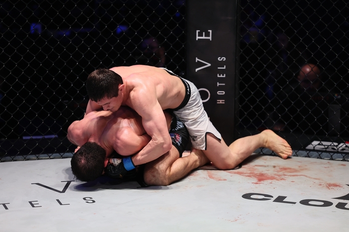 5R、中央を取ったクラマゴメドフに組んで体を入れ替えたムサエフが四つに組んで押し込み、大内刈テイクダウン! サイドからヒザ。左で脇差し、クラマゴメドフに背中を着かせてパウンド。ケージまで動き上体を立てるクラマゴメドフだが、シングルレッグを切られ下に。しかしまたもシングルレッグで右で脇差しレッスルアップでムサエフをケージに押し込む。
