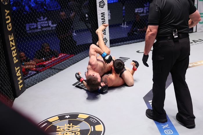 カザフスタンのイスブラエフはアマチュアIMMAFで活躍し、プロMMA10勝無敗。Alash Prideライト級王者。ペルーのピネドは23年PFLフェザー級トーナメント覇者。25年トーナメントでは決勝でモフリド・ハイブラエフに肩固めで一本負けした。