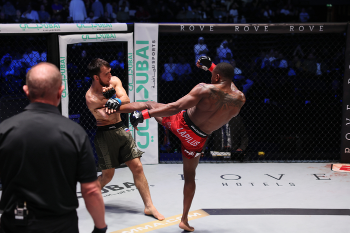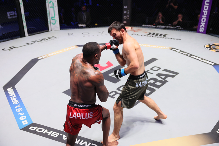 #RoadToDubai official result: #3-Taylor Lapilus (24-4) defeated Kasum Kasumov (16-3) via TKO at :45 of round three pic.twitter.com/2PAEFTE8Kk