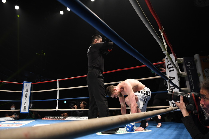 1R、アハテルバーグは前蹴りを連打、コズロフもカウンターのジャブでのけ反らす。両者慎重な出足だったが、アハテルバーグが右カーフを蹴るとコズロフが悶絶して倒れ、アハテルバーグのKO勝ち。3試合連続の1R KOでトーナメントを制した。新怪物の誕生だ。