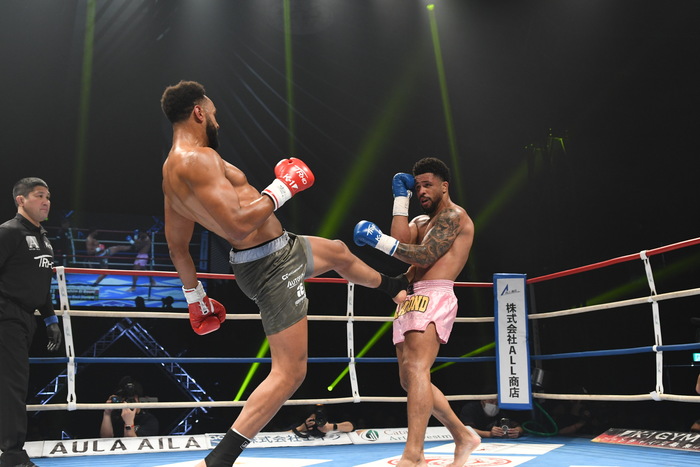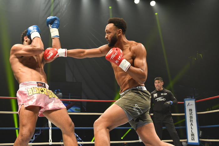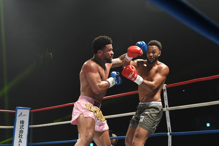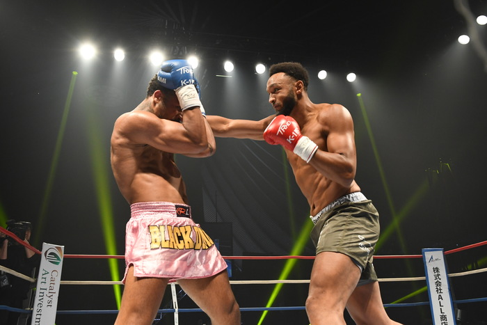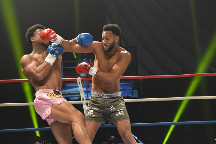 2Rが始まってすぐ、ボウニが右の打ち下ろしフックでダウンを奪う。ボウニはボディへの飛びヒザ、右ストレート、ジャブ。ボウニの左にはマルコが右クロスを合わせようとする。ボウニはワンツー。