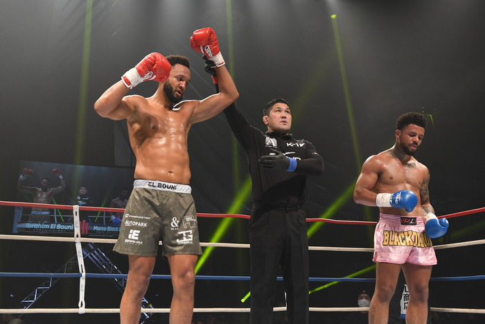 マルコが飛び込んでのワンツーで、バランスを崩すボウニ。クリンチが多く、ボウニは警告を受ける。前に出てのマルコの左右フックに手が出ず、そのまま試合終了となった。