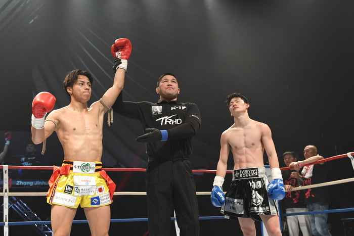ジャン・ジンホイは2025年中国ムエタイ選手権優勝の肩書きを持つ20歳。戦績は17勝(8KO)3敗。身長は172cmと石井の165cmを7cm上回る。中国・武林風を主戦場としている。