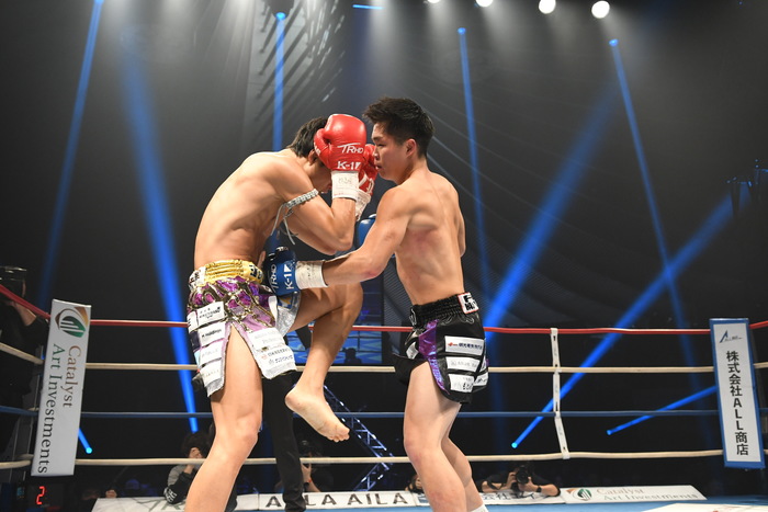 2R、橋本はジャブ、右ストレートを池田のガードの隙間に打ち込む。池田は左のロー&ミドルで応戦。橋本は左アッパーを突き上げ、左ボディも打つ。橋本がコンビネーションで手数多く攻める中、池田がアゴへヒザを突き上げた。