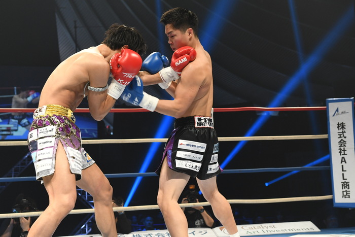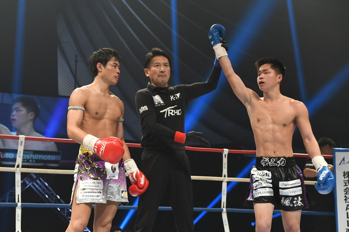 橋本は近距離での左右フック、池田は右カーフ。橋本の左右フック連打で左フックがヒット。最後は意地の張り合いのような打ち合いとなった。