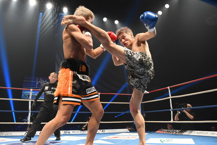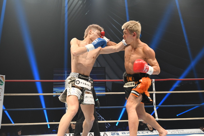 1R、最初の倉田の左ローがローブローとなっていきなり中断。再開後、倉田は左右のミドル、齊藤は右ミドルからのワンツーで前に出る。さらに右カーフ。齊藤はスイッチして左右のストレート、オーソドックスに戻って右カーフ。倉田は左フックを強振する。齊藤はワンツーをヒットさせるが、倉田は前に出て打ち合いに行き、ワンツー。齊藤は右のカウンター。