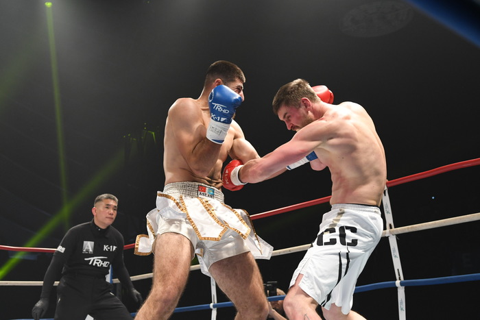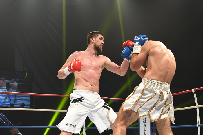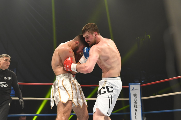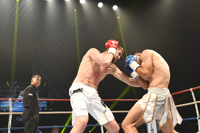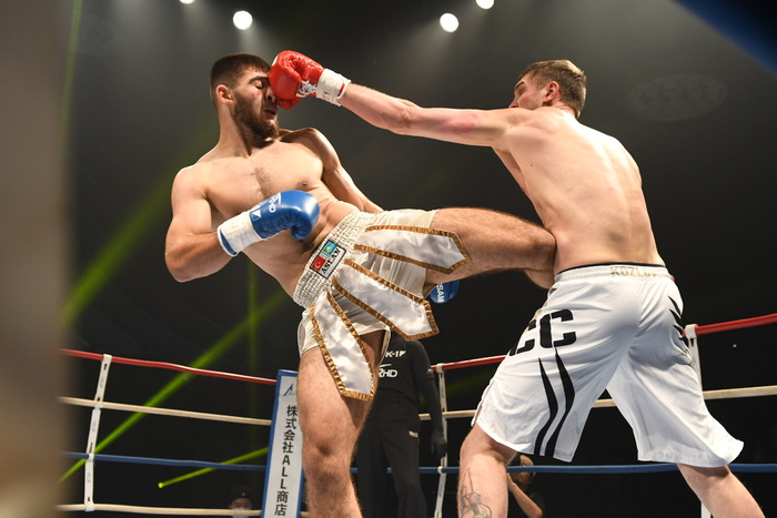 2R、コシエフは右カーフを狙い撃ち、飛びヒザのようにジャンプし、着地するとパンチを連打する。コズロフは左右ボディの連打、飛びヒザ蹴りを放つコズロフは、着地するとパンチをまとめる。コシエフは左右ボディと右カーフ。右ストレートで前に出るコズロフに、コシエフは右ストレートと左ハイ。