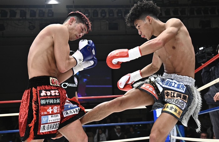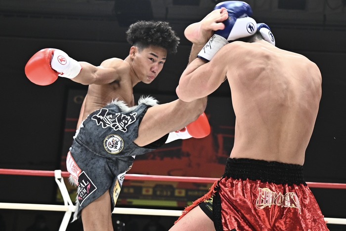 1R、前蹴りを互いに出し、ローを蹴っていく。前に出るのはHIROYUKIで左の三日月蹴り、星は右カーフを蹴り返す。圧をかけていくHIROYUKIに星は左へ回り込んでいく。ミドルの蹴り合い、ローの蹴り合いが続く中、蹴り足キャッチも使う。