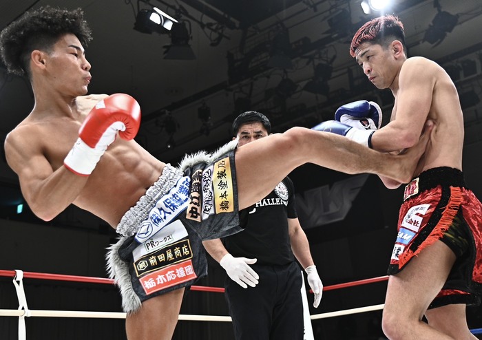 3Rも圧をかけていくHIROYUKIに、回り込む星。右ロー、左ミドルを蹴る星にHIROYUKIは右カーフを蹴り返す。回り込む星をなかなか捉えることが出来ないHIROYUKIは右ボディストレートを打つ。星は回り込んでのロー&ミドル。HIROYUKIは縦ヒジで入り込む。さらに距離を詰めて左ボディを打つHIROYUKI。手数多くヒットを奪ったのは星だが、終盤のHIROYUKIの攻撃は印象が強かった。