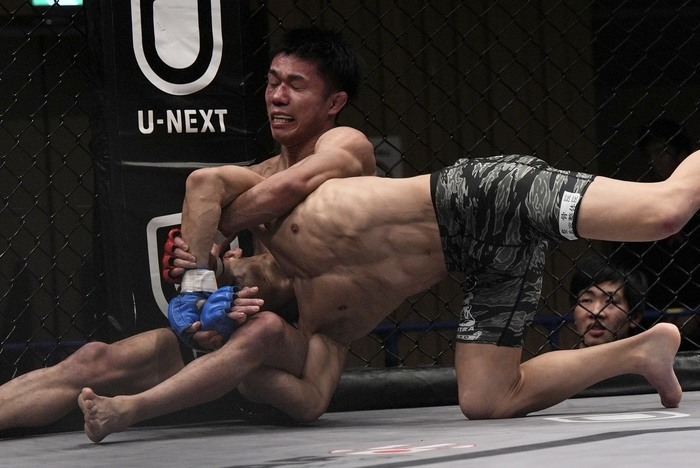 3R、ジャブロー、ボディ打ちの鎌倉のテイクダウンに今井は下からキムラ狙いも、パウンドの鎌倉。今井は下からレッスルアップ。片足を挟んで煽ってバックに。両足をかけてリアネイキドチョークをパームトゥパームで仕掛けるが、喉下に入らず。