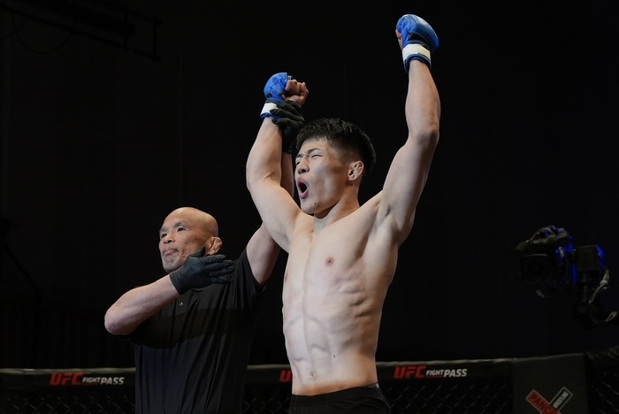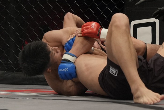 右ストレートを突く田口にシングルレッグからスタンドギロチンでがぶり。田口に尻を着かせてアナコンダチョークを極めた。