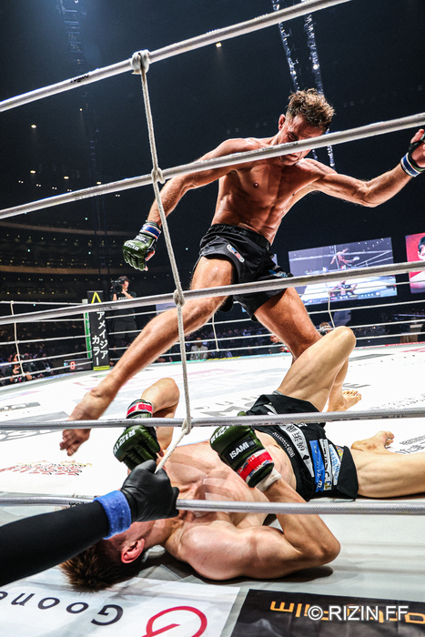 「どうですかね(笑)。会場の空気的にはテイクダウンされると『またか』って感じもあるかと。固めてヒジでスクランブルもあまりしないときもあるので。ただ大晦日は際(きわ)をちゃんとやるようになりました。テイクダウンして立たれる前提で、離れ際に武器を用意しておくのは良かったと思います。あとはサッカーキックも出せるようになってきたので、たとえばテイクダウンして離れてサッカーキックっていう、KNOCK OUTノUNLIMITEDルールのような戦い方もできるんじゃないかと(※3月7日『RIZIN.52』にKNOCK OUT UNLIMITED王者カルロス・モタが参戦し、伊藤裕樹と対戦)。それを身につけるとだいぶ怖い。RIZINルールならまだサバテロ選手を活かせるし、活かしてもらわないと」