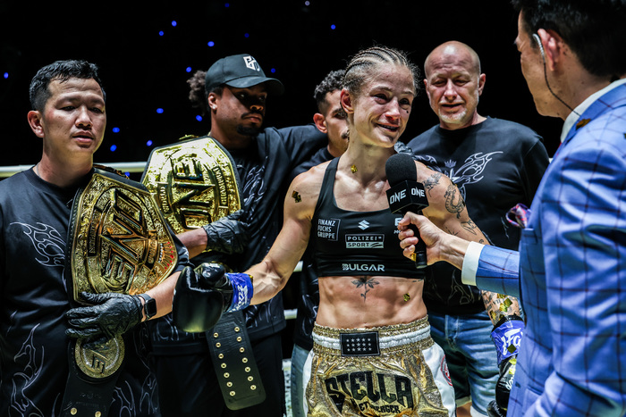 TWO-SPORT QUEEN 👑👑 Stella Hemetsberger defeats Jackie Buntan once again to add the ONE Women's Strawweight Kickboxing World Title to her Muay Thai gold!