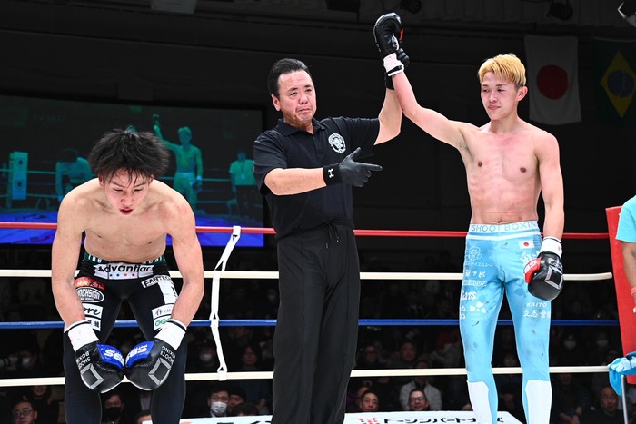 判定は2-0で魁斗が勝利。マイクを持った魁斗は「内容は最悪やったんですけれど、次ももっと強い相手を用意してもらって、僕が勝ち上がって上にいくのでよろしくお願いします」とアピールした。