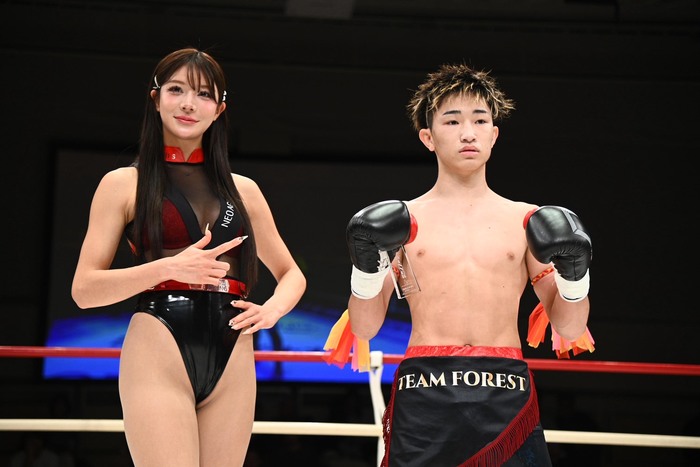 片山はマイクを持つと「片山魁強いでしょう。フライ級1位になってるんですけれど、バンタム級も盛り上がっていないと思うので、バンタム級王者の佐藤執斗選手、相手がいないと思うので年内にお願いします。海人選手が卒業して盛り上がりがないと思うので、シュートボクサーの片山魁が盛り上げます。強くなって帰ってきます」と、バンタム級王座挑戦をアピールした。