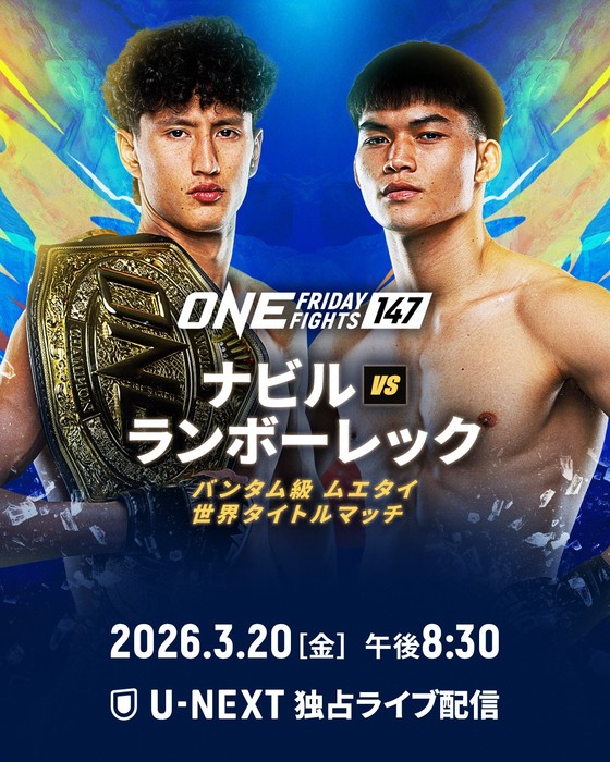 2026年3月20日(金)タイ・ルンピニースタジアム『ONE Friday Fights 147』(U-NEXT配信)にて、ONEバンタム級(-65.8kg)ムエタイ世界王者ナビル・アナン(アルジェリア/タイ)が初防衛戦を行うことが発表された。