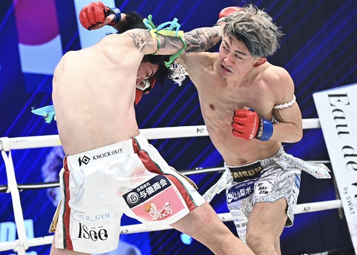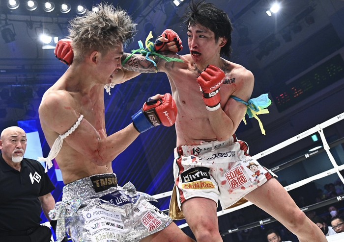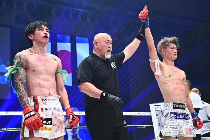 壱は左ストレート、左ヒジでどんどん前へ出ていき、前田はバックハンドブロー。それでも壱の勢いは止まらず、左ヒジ、前田は右足を払う。前田の右ストレートに左ヒジを返す壱だが、ダウンを奪い返すことは出来なかった。