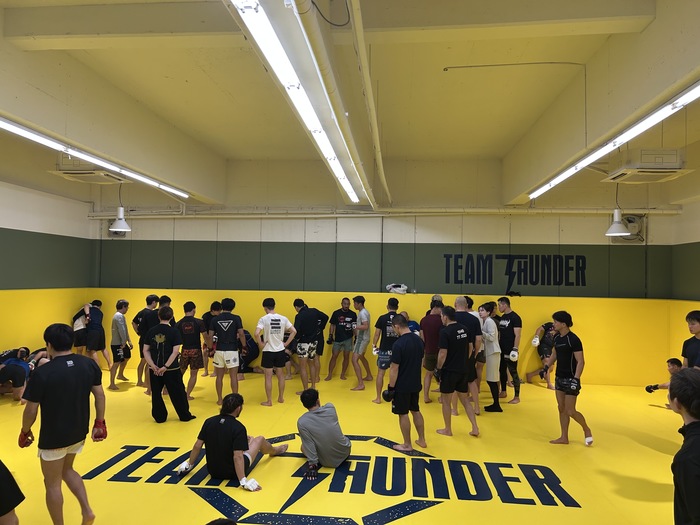 『TEAM THUNDER』はもともと屋内ドッグラン施設だった広大なスペースを丸ごとマットスペースにし、その四面を「壁」にしてケージレスリングが出来るようにした。米国のメガジムに勝るとも劣らない施設と言っていい。