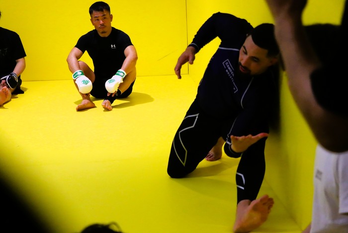 この“全方向対応型の実戦空間”で、ウィテカーは、自身のMMAの一端を紹介、指導した。