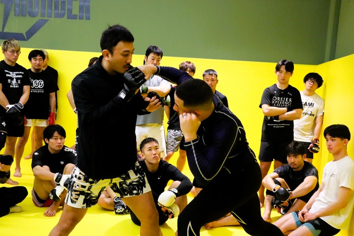 カウンターの動きのようでいて、自分主導なんです。相手にジャブを出させるために、顔を前に出したり、さまざまなフェイントで距離をコントロールして先回りして動きを混ぜる。こういったことを反復練習して、コンビネーションにして自分のものしなくてはいけないです」と、セミナーであらためて気づきを得たようだ。手塚の次戦は、4月29日の『ONE 175』日本大会になるか。