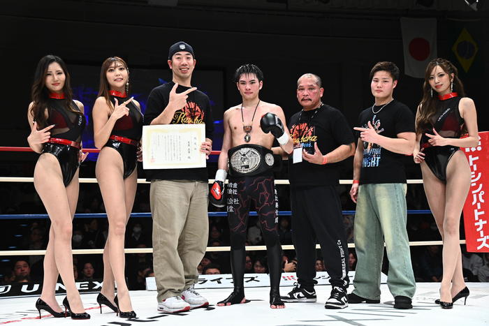 【写真】通常は創始者であるシーザー会長が自らベルトを巻き、チャンピオンの手を上げる