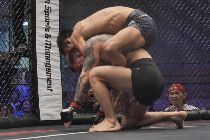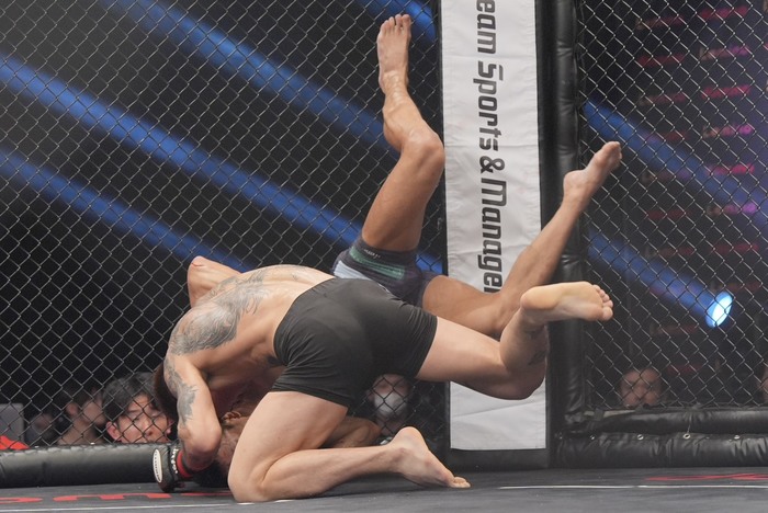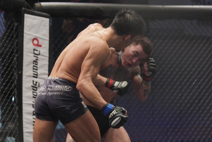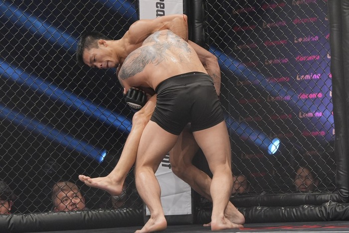 そして10月のLemino修斗沖縄大会で野瀬翔平と対戦。左ストレートから組みに来た野瀬をがぶったシンバートルは80秒、ギロチンチョークで衝撃の失神一本勝ちを収めている。7勝無敗。