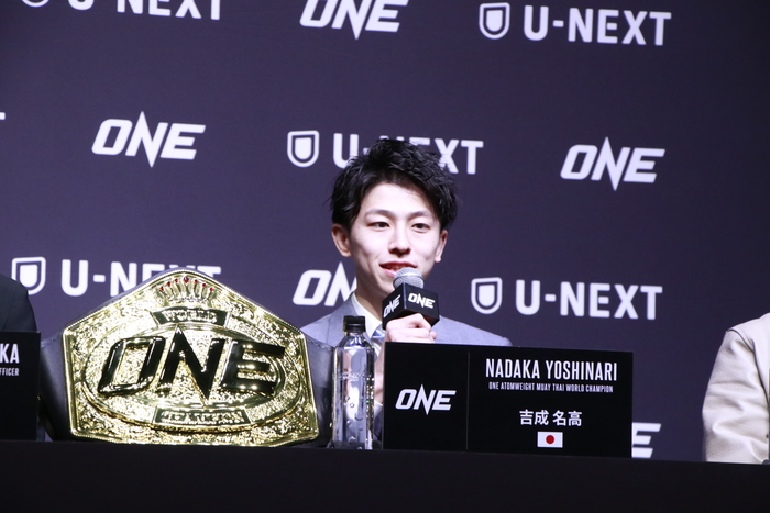 ファンにどういうものを見せていきたいか、とのメッセージには「自分の試合のスタイルだったりとか、試合展開っていうのは、他の選手に真似できない自分唯一のものだと思っているので、そういったものを見て自分の試合を楽しんでもらえたらなっていうのと、自分は今ONEのムエタイのチャンピオンで、このベルトをまずしっかりと防衛し続けて、挑戦者がいなくなるような位置まで行けたら、また新しいチャレンジもしていければと思っているので、自分の試合に注目をしてもらえたら嬉しいなと思います」と、唯一無二の試合を見せ、挑戦者がいなくなったら次のチャレンジをしていきたいと語った。