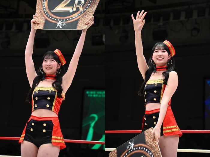 「Krushガールズ」は2024年・2025年と2年連続で務め、長い脚が魅力の現役女子高生ラウンドガールとして注目を集めた。