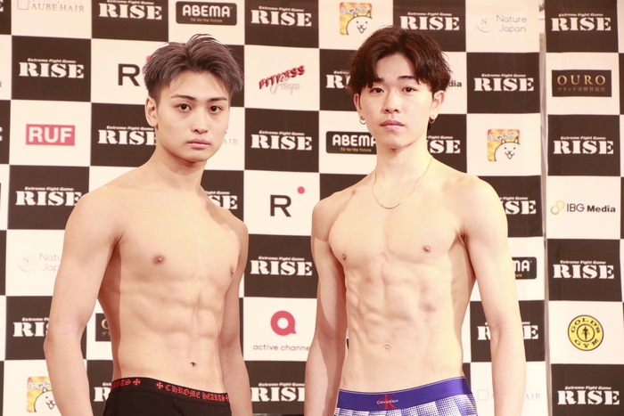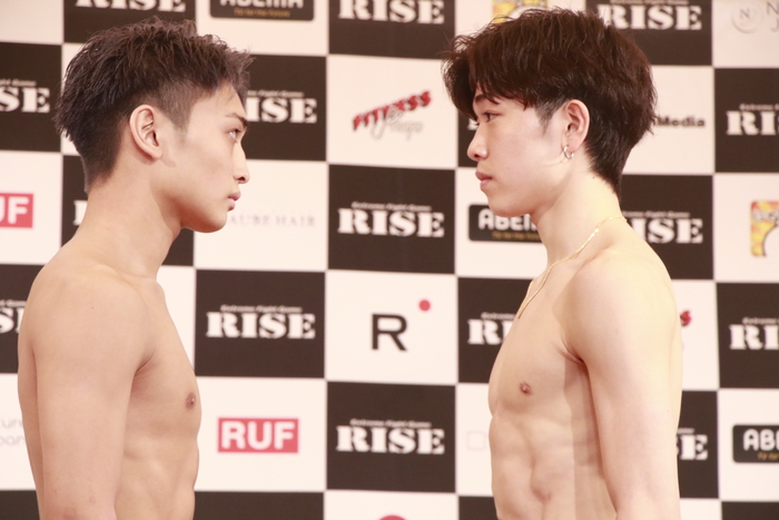 メインイベント(第11試合)の第4代RISEフライ級(-51.5kg)王座決定戦3分5R延長1Rで対戦する、同級1位・棚澤大空(TEAM TEPPEN)は51.35kg、同級3位・松本天志(TARGET SHIBUYA)は51.4kgでそれぞれ計量をパス。