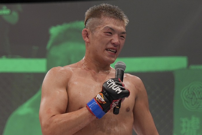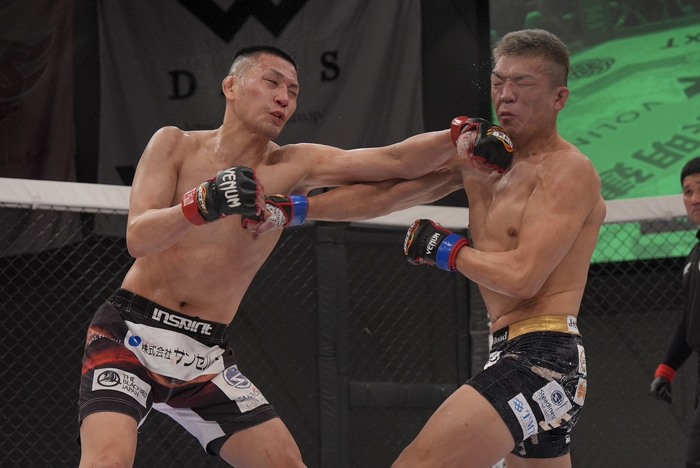 TBJの神田は、レスリンググレコローマンで天皇杯ベスト8、2018年にMMAデビューし、23年2月、DEEPフェザー級暫定王座決定戦で五明宏人に判定勝ちで戴冠。同年の『ROAD TO UFC』では初戦突破するも準決勝でリー・カイウェンに判定負け。牛久絢太郎の王座返上に伴い、神田が正規王者となるも、24年3月、青井人に判定2-3で敗れ王座陥落。
