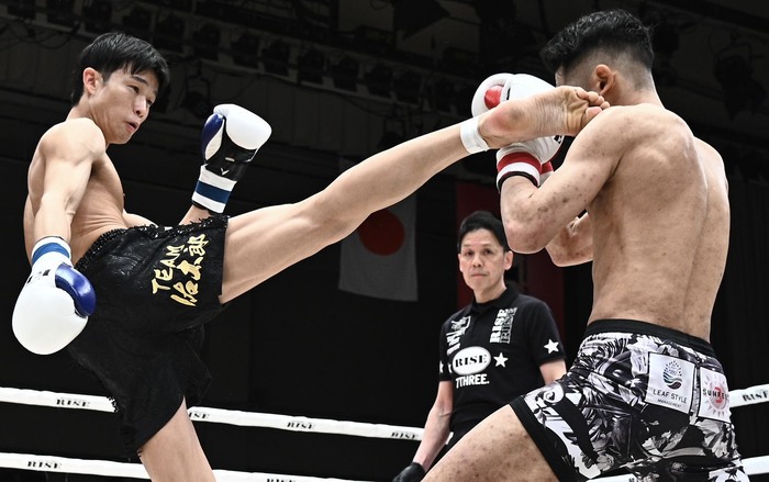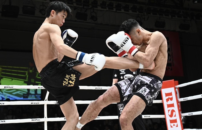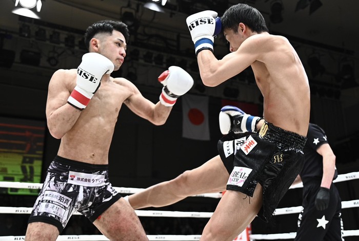 白鳥はワンツー、堀は深く踏み込んで右ロー。白鳥はサウスポーになるが、奥足の左足を蹴られる。堀の徹底した右ローを警戒しながらも、左ストレートを打って行く白鳥。