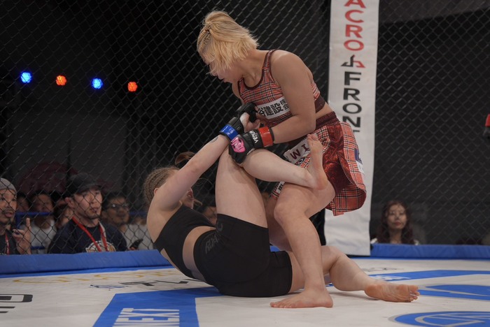 足関節狙いのキム・ダンビを潰して金網に押し込むとケージ背に座ったキム・ダンビの首をとらえ、ノーアームギロチンチョークでケージに押し込みタップを奪った。
