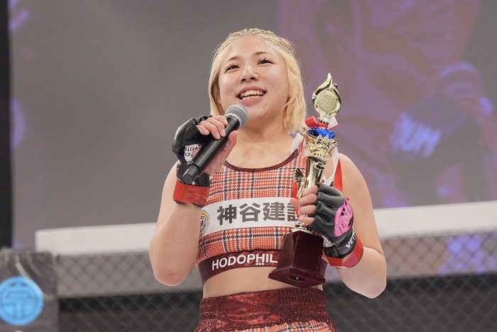 その後、DEEP JEWELSでスーリ・マンフレディ、アム・ザ・ロケットから一本勝ちを収め、25年3月のRIZIN香川大会では修斗IL優勝のパク・ソヨンを2R パウンドアウト。続く6月のRIZIN北海道大会でもPANCRASE王者のソルトに判定3-0で完勝するなどストロー級で国内敵なしに。2025年9月にパク・シウの王座に挑戦、判定3-2でリベンジ。3度目のチャレンジで第5代ストロー級王者となった。22歳。