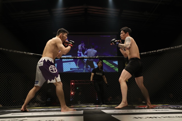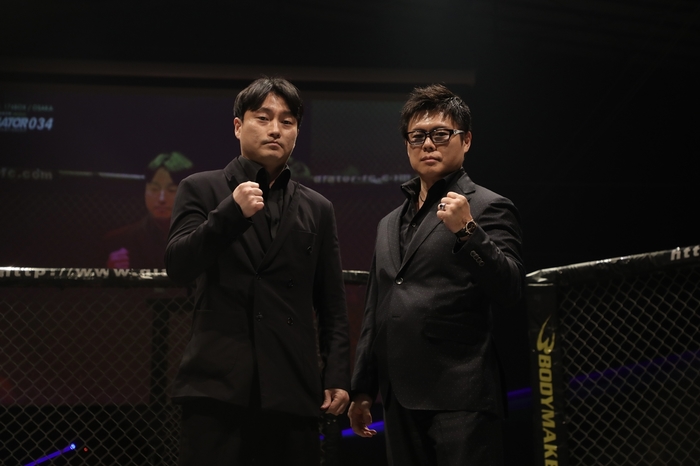 なお、「日韓対抗戦」前にBLACKCOMBAT日本支部ボンスン代表と櫻井雄一郎GLADIATOR代表がケージイン。ボンスン代表が「大好きな大阪に、そしてこの場にご招待いただいた櫻井会長、ありがとうございます。今後ともGLADIATORと上手く協力していきたいと思っています。どうかよろしくお願いします」と挨拶した。