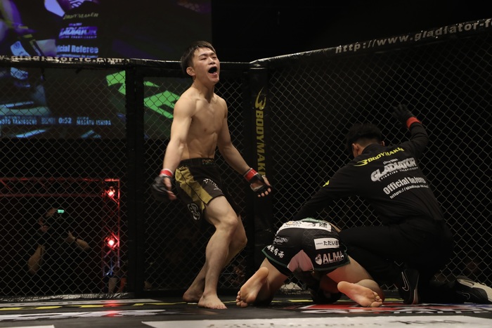 【GLADIATOR】「日韓対抗戦」ヅッキーニョスが1R一本勝ちで小森真誉に挑戦表明、上田祐起は強豪キム・ウンソンに反則勝ち、國頭武が一本勝ちで中川晧貴に挑戦アピール、徳野が13歳差対決TKO勝ちで「中年でも頑張ってるヤツいる」。BLACK CUPに大番高明、ルキヤが参戦