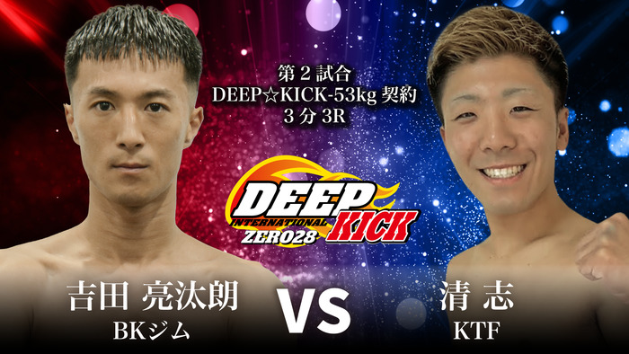 DEEP☆KICK-53kg契約にて昨年5月ぶりの復帰戦に燃える吉田亮汰朗(BKジム)vs.1年半ぶりの試合となるベテランファイター清志(KTF)。