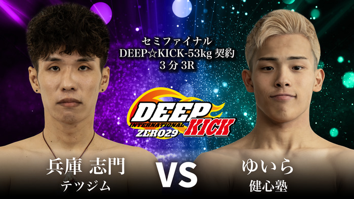 第2部『DEEP☆KICK ZERO 29』では、昨年9月に初防衛を飾ったDEEP☆KICK-63kg第7代王者である吉岡龍輝(及川道場)への挑戦権を懸けたトーナメントの決勝戦、同級1位の花見浩太(NJKF大和ジム)と1月の準決勝をTKOで制した原田闘鬼(心将塾)がタイトルマッチへの切符を奪い合う。