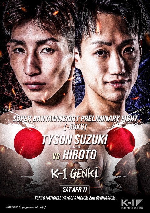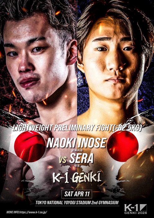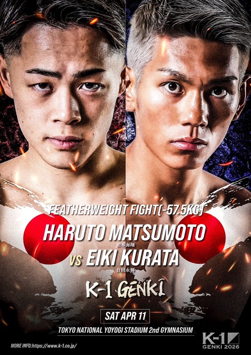2026年4月11日(土)東京・国立代々木競技場第二体育館『K-1 GENKI 2026』の【第1部】追加対戦カードが決定した。