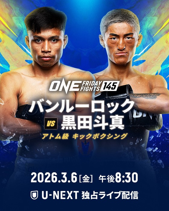2026年3月6日(金)タイ・ルンピニースタジアム『ONE Friday Fights 145』(U-NEXT配信)に、日本人3選手の出場が発表された。