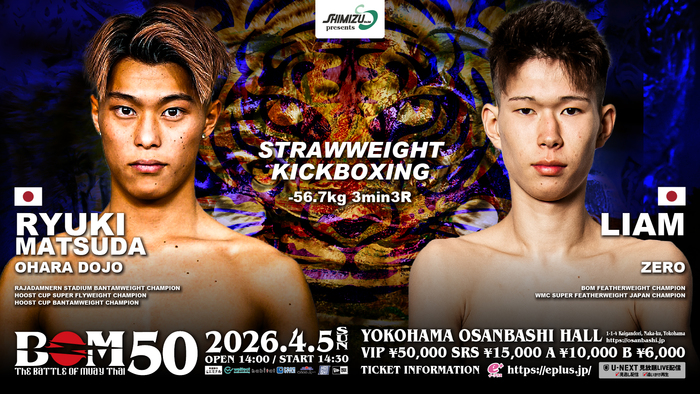 2026年4月5日(日)神奈川・横浜大さん橋ホール『Shimizu presents BOM 50』(U-NEXT配信)の記者会見が横浜市内で行われ、主要対戦カードが発表された。