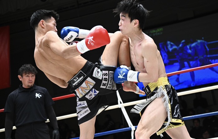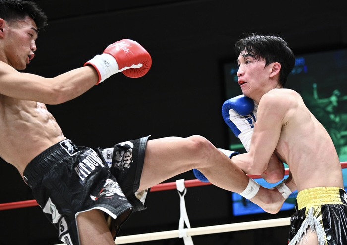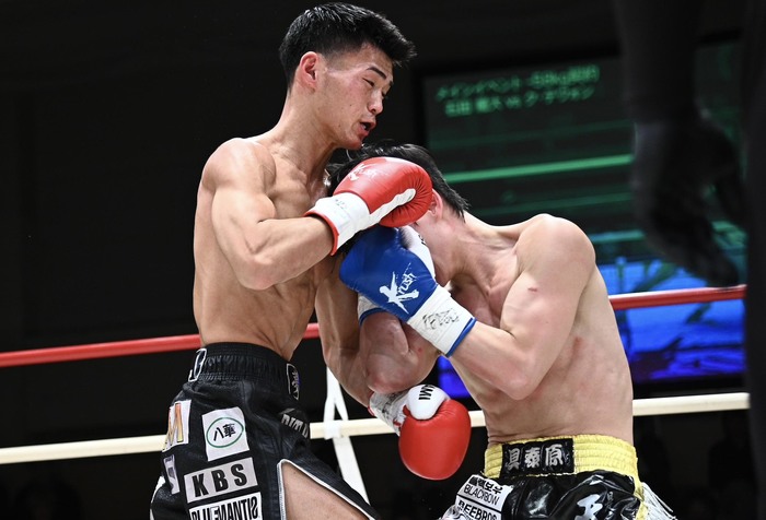 1R、サウスポーの石田に左カーフを蹴るテウォン。石田が右ボディアッパーを打つと、テウォンは思い切りの右ストレート。石田は左ロー、左フックからの右フック。テウォンの飛び込んで打つパンチをかわし、石田がパンチも蹴りも当てていく。