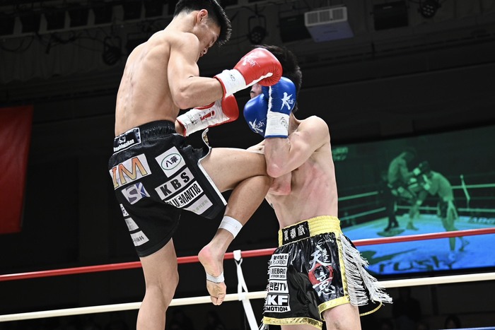 2R、テウォンは派手に回転してのテコンドー風の動きを見せたが、石田は動じない。左ボディから右三日月、テウォンが前へ出てくると右フック、ヒザ。テウォンのパンチはかわし、左ボディストレート、ヒザを当てる石田。テウォンの入り際に左フックも合わせる。