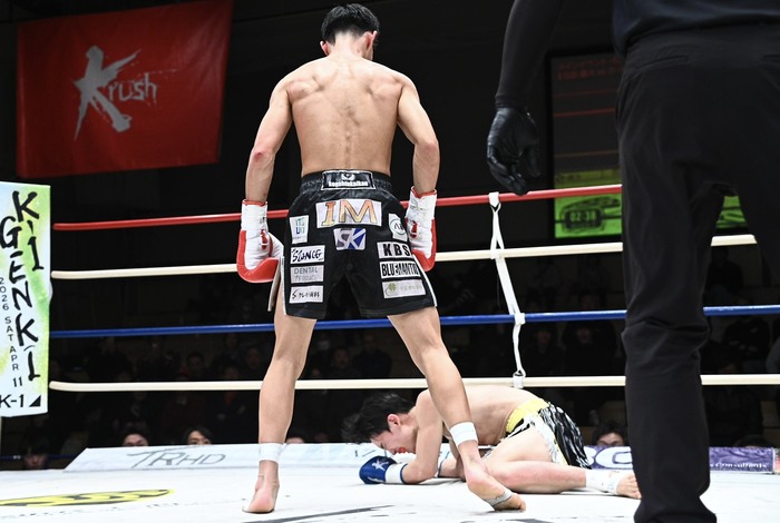 3R、クリンチ状態から回転してバックハンドブローを放ったテウォン。そのまま打ち合いに行くが、石田は左三日月を2連発。そしてテウォンが勢いよく入ってきたところに左ボディをグサリ。この一発でテウォンは悶絶。石田の見事なKO勝ちとなった。