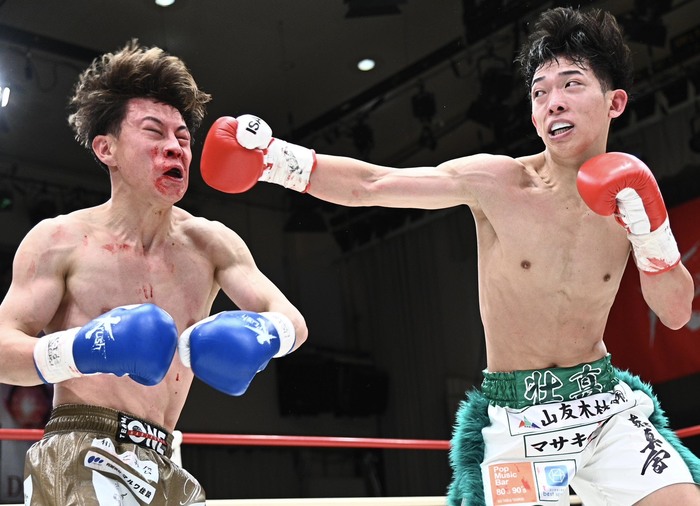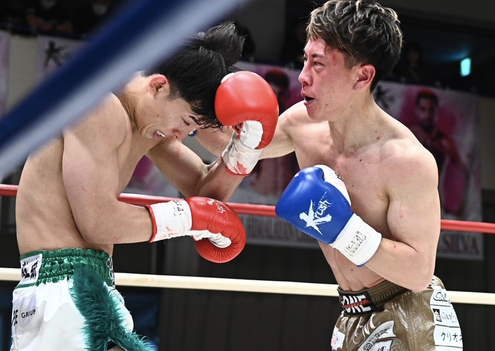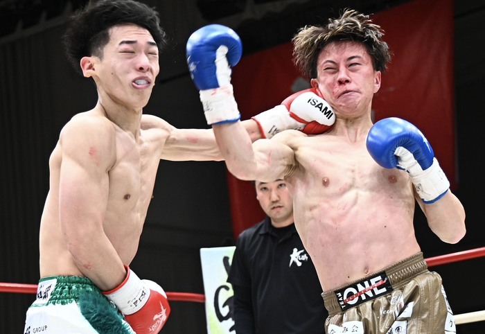 3R、ジャブを突く近藤は後藤が前へ出てくるところに左ストレート。後藤はその一発をもらっても左右フックで打ち返してくる。近藤がワンツー・右フック、左ストレートも。後藤は動きが悪くなり、パンチを出すもスピードがない。近藤が左ストレート、右フックで攻め、左ストレートでのけ反らす。鼻血を出す後藤は気力で前に出るが、近藤に組まれてしまい打ち合いに持ち込めない。最後は近藤が左ストレートを当てていった。