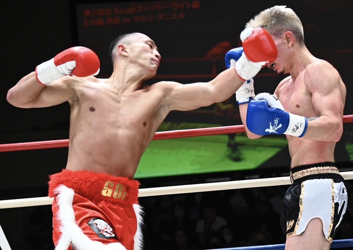 3R、ワンツーの打ち合い。ダニエルの右カーフ連打に川越は右ストレートと左ボディ。プッシュしてダニエルをコーナーへ詰め、左ボディを打つ。ダニエルは蹴りを返してくるが単発で、かなり疲れも見える。川越は左手を伸ばしての右ストレートで最後まで攻め続け、判定3-0で勝利した。